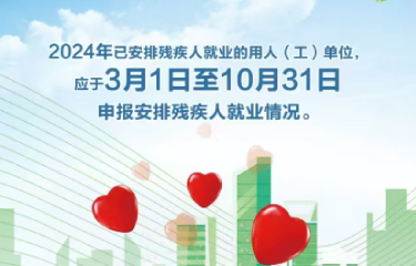 2024年已安排殘疾人就業(yè)的用人(工)單位,應(yīng)于3月1日至10月31日申報安排殘疾人就業(yè)情況。